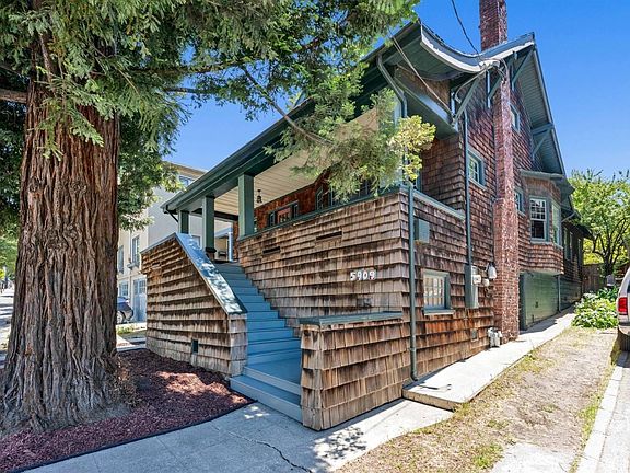 5909 Keith Avenue is a rare 2-story 4BD+/2BA Craftsman nestled just 1.5 blocks from College Ave shopping & dining, local Schools & Rockridge BART. The 1912 Vintage home greets visitors with a stately covered porch & lots of curb appeal, beckoning for the next owners to make it their own. The interior, which boasts wood floors, period details & general charm through-out, features a FLR w/FP, FDR, a big eat-in kitchen, 3 ample bedrooms, office & full bath, all on the main level. Upstairs in the converted attic is a large bonus family room or possible Primary Suite/5th BD, plus another cozy BD or den w/ private balcony, and a 2nd full BA. Ample front & rear yards, plus a one-car garage & large basement w/storage & hobby space, complete this rare offering. Wonderful location literally steps from popular restaurants, shops, markets (Trader Joes, Market Hall, Safeway), cafes, libraries, top-rated schools, parks & BART/Public transit!