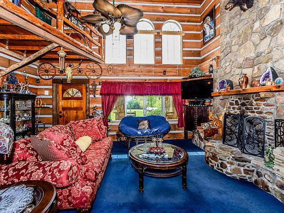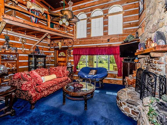 REDUCED 11K!!! THIS UNIQUE SECLUDED & PRIVATE PROPERTY FEATURES A GATED ENTRANCE AND 2 LEVEL ACRES!! AMENITIES TO INCLUDE: STONE & VINYL CONSTRUCTION, NEWER ROOF, NEWER HOT WATER HEATER, COVERED FRONT PORCH, 2-STORY LIVING ROOM (W/WOOD BURNING STONE FIREPLACE, KITCHEN (W/CEDAR CABINETS & SEP. BAR AREA), REC ROOM (W/GAS PROPANE FIREPLACE), SEP. DINING ROOM (W/WOOD STOVE & TILE FLOORS), 4 BEDROOMS, 2 GUEST BATHS, SEP. DEN (W/WOODBURNING FIREPLACE), UPSTAIRS LOFT (OFFICE/DEN AREA), SEP. LAUNDRY ROOM, BACKYARD PATIO AREA, 2-CAR CARPORT, AN ADDITIONAL SMALL GUEST HOME (W/LOFT, ELECTRICITY & WATER), SEP. SHED, 2-STORY BARN (W/ELECTRIC), COVERED FRONT PORCH, HOT TUB AND FENCED YARD!