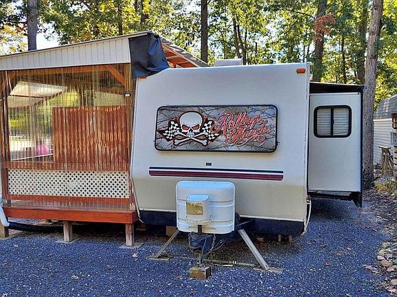 Enjoy your own permanent CAMPING spot in Saunderosa Campground/Park. Saunderosa Park Inc. is a beautifully landscaped campground located in the mountains of south central Pennsylvania. Enjoy the following amenities at Saunderosa: Large in-ground swimming pool with a kiddie pool, a lake for fishing, a playground for children, Kangaroo jumper for Children, hunting, horseshoes, mini-golf, hiking trails, golf cart trails, a game room and planned activities throughout the summer. Season is April 26th#x2013; October 27th 2024. This is a WELL MAINTAINED 2000 Chateau Camper sleeps 4, with Gas Range/Oven, 1 Bedroom with New Queen Mattress, Golf Cart, 12 x 16 Shed, additional out building with Bathroom, 2 Power Recliners, 2 Refrigerators, 2 Televisions, Fire Pit, with Benches, Deck Chairs. Picnic Table. Everything you need to enjoy camping in this wooded camping resort. Yearly Lot Rent is $3200, All sites come with WIFI Internet, Water and Sewer, Electric is metered,