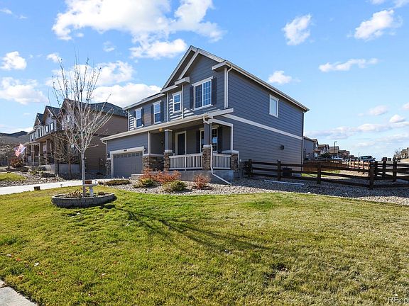 **VA Eligible Assumable Loan @ 2.75%** Elegance and Functionality Combined: Stunning Corner Lot Home in the Heart of Cobblestone Village. Welcome to your dream home in the highly sought-after Cobblestone Village! This beautiful Hemingway Model sits on a corner lot, just two blocks from the community pool, tennis courts, and recreation area, offering a perfect blend of luxury and convenience. The floor plan is elevated with a vaulted sunroom, creating a bright and inviting space that seamlessly connects with the outdoors. Immerse yourself in sophistication with high-end contemporary finishes throughout the home. The heart of the home, the gourmet kitchen boasts 42†cabinets, slab granite countertops, an over-sized island, and slate appliances. A paradise for those who love to cook and entertain. Fall in love with the custom pantry—thoughtfully designed for optimal space and organization. Wood shelves, drawers, and two pull-out baskets make it a kitchen enthusiast's delight. Enjoy the warmth and beauty of engineered wood floors that grace the main level, enhancing the home's charm and durability. The color palette and appointments are straight out of Pottery Barn, creating a stylish and cohesive aesthetic throughout. A dedicated main level study provides a quiet and productive space for work or study. The loft area upstairs is wired for surround sound, presenting a perfect flex space for movie nights or entertainment. The large primary bedroom features a coffered ceiling, an ensuite master bath, and an expansive customized walk-in closet with his and hers design, adjustable shelves, built in lighting vanity mirror —a haven for those with a passion for fashion. Convenient upper level laundry. The full unfinished basement offers both incredible storage space and a blank canvas for your creative finishing touches. This meticulously maintained and thoughtfully designed home is a rare find in Cobblestone Village, conveniently nestled between Castle Rock and Parker!
