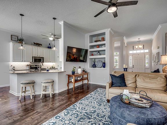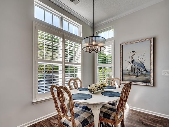 The beautiful Barefoot Resort home is ready for you! This home has been well kept with many upgrades for them and now a great benefit for you. Pull in the drive to a side load two car garage. As you enter the home, you are greeted by cool neutral colors and a beautiful hand scraped wood look flooring throughout the main living area. Gaze from front to back with ample natural light coming through the sunroom. Look up to see craftsman crown moldings in the main living area which continues into the bedrooms. Plantation shutters throughout the home convey. The kitchen has been renovated to include upgraded granite countertops with flat top bar extending into the eat in area. Stainless steel appliance and all white cabinets match a modern flair with classic styling. Formal dining room with an open but separated feeling for hosting friends, neighbors, or family. On the left side of the home you have two bedrooms with ceiling fans and a full bath. On the way across the split floorpan, stop by the dedicated laundry room on your way to the primary suite. The primary suite has a lovely tray ceiling and ceiling fan for a breeze while you sleep. Primary bathrooms boasts a soaking tub and walk in shower with expansive vanity which has a makeup counter. Separate water closet and large walk-in closet put the cap on a wonderful suite to spend your your time. Out back, enjoy time grilling and sipping a nice cold beverage on your patio with private backyard. The location is perfect! Skip the swing bridge and come right to the back with easy access via Water Tower Road. Convenient to Highway 31 to travel all over the Grand Strand. Barefoot Resort has access to two pools, tennis and pickleball courts, basketball, a fitness center for any health enthusiast, and a library. You want the beach? Great! A private oceanfront cabana has every amenity you can imagine including third floor lounge chairs with unbeatable views. World class restaurants, shopping, and entertainment just a short drive away.