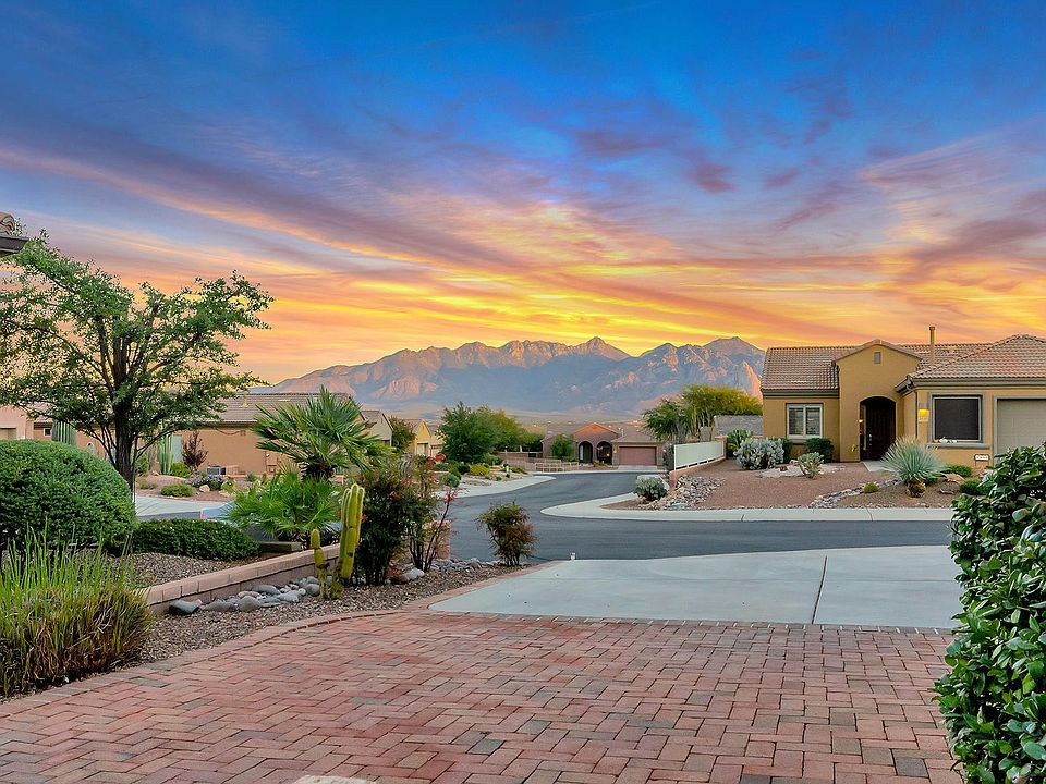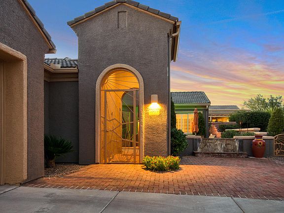 You may have trouble deciding what resembles paradise more, the uncompromising Mountain Views from the front court yard with soothing sounds from the trickling water feature or the pristine house with many custom features. Lets start with the tiled medallion in the circular foyer, glance up & you'll notice a custom water feature designed for the special niche. Plantation shutters dress up the windows, strategically placed ceiling speakers, whole house water filter, upper & under cabinet lighting, wood tile flooring, etched glass window pane in the den that displays the Santa Ritas in wonderful colors. The garage features a 240 volt outlet, epoxy floor coating, utility sink, and plenty of storage cabinets. A fun putting green, gas fire ring, & a grand water fall graces the back yard. Superb