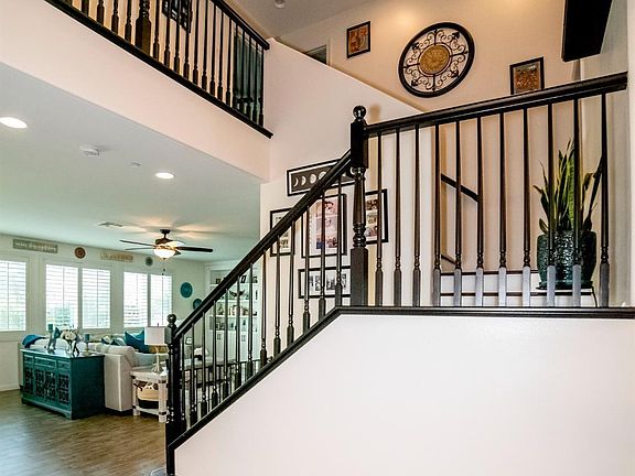 NEW HOME FEEL! This Beautifully upgraded and spacious two-story home! With five bedrooms and three baths. You'll enjoy your gatherings in this open floor plan that's designed for entertaining and everyday living. It has wood-like tile flooring throughout and upgraded carpet and padding in bedrooms. The home chef will also enjoy cooking in the kitchen that offers great counter space and center breakfast island, white cabinets, stainless-steel appliances. The first floor offers a spacious bedroom and bath, family room with custom cabinets, and formal dining area with cabinets for your preferred beverages. There's ample storage under the stairs. Mid stairs you'll have the laundry room with cabinets. Upstairs is the owner's suite with separate shower tub, dual sinks. The loft in hallway has a nice workspace. There's three bedrooms and a bath as well. This home also has shutters throughout. Enjoy some relaxing time in the back yard or front yard sitting area. It's a 3-car tandem garage!