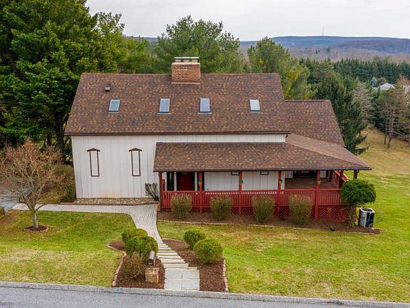 One of a kind 1900s barn conversion boasts like-new finishes and gorgeous updates throughout! Set on a scenic lot with rolling vistas, this home is ready to entertain!!! Enjoy this gorgeous setting from tiered deck accessing paver patio and inground pool. Perfect for summer get-togethers! Inside impressions from reclaimed hardwood floors and lofty dining room with dual statement chandeliers and cozy wood stove off updated kitchen with maple cabinets, Corian counters, and stainless appliances. Family room drenched with light from front to back windows and feature cathedral ceilings with deck access! Main level owner's suite with attached bath! Upper level brightened by skylights hosts two spacious bedrooms with vaulted ceilings and open loft, making a great study, reading, or exercise space! Finished lower level exercise and bonus spaces includes 1/2 bath, fourth bedroom, and unfinished seller/workshop spaces! 2014 architectural roof, gutters, and all skylights; 2016 full exterior paint! This home is a true gem and ready to fill with new memories!