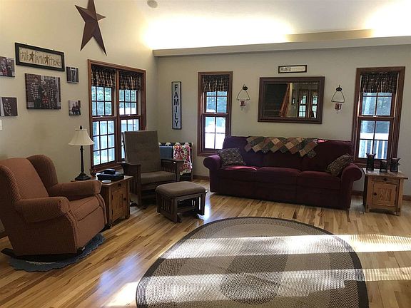 Beautiful open 2-story home nestled on 5 sprawling acres complete with open & wooded spaces and a pond on the top of ridge of tree-line. Beautiful updates found throughout this home; natural hickory wood floors throughout main level, beautiful granite in the kitchen, stone wood-burning fireplace added, all new appliances in kitchen, new furnace, paint & carpet. This home features nice open spaces & architectural design. Large master bedroom with tray ceilings and nice master bath with enlarged walk-in closet that includes laundry room. Additional full bath and 2 bedrooms with vaulted ceilings. Spacious walk-out lower level features a large family room, full bath & study that can easily be used as a 4th bedroom and a pellet stove for additional warmth in the winter. This home features lots of natural light throughout and beautiful views all around. Exterior is park like setting and features a 40x30 outbuilding complete with full bath, loft, heat, air & numerous options for use. RV parking offered as well on the side of building. This home offers something for everyone both inside and out. Only minutes to town, HWY 37, I69, schools & shopping. Don't miss out!