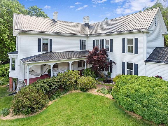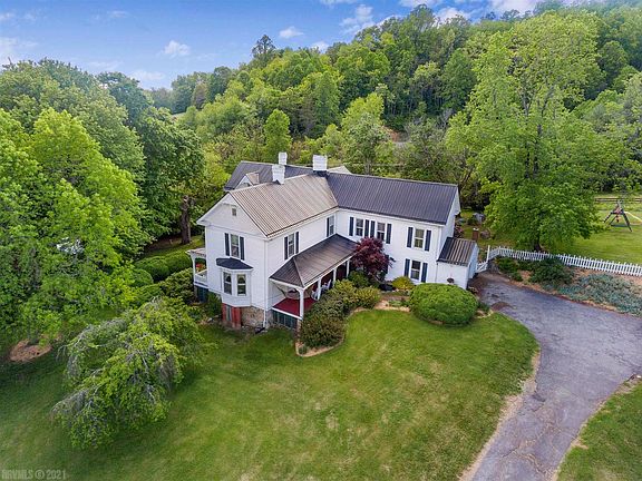 SUPER CHARMING! Historic farmhouse on hill overlooking the South Fork Roanoke River valley with large windows to allow natural light to fill the interior during the day. Two expansive covered porches for lounging, visiting, dining. Wood floors in all rooms except kitchen and bathrooms. Supplemental heat from propane gas logs in kitchen and parlor. Large pantry/laundry room with ample shelves for storage. High speed internet/cable TV hookup. Root cellar with natural cooling for food storage and other items. Large playroom/craft room. New metal roof installed three years ago. 28x24 barn with loft, tack room, chicken coup (with adjoining pen), large fenced backyard with patio. Two-story historic spring house for storage or redevelopment possibilities Stocked fish pond and adjoining creek (aluminum Jon boat included).Artificial creek/pool feature along main house entrance. Fire pit located in beautiful pine forest. Fenced raised bed vegetable garden Blueberry and wineberry bushes