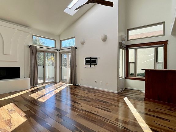 This 3-bedroom Stoneridge home has been extensively renovated with a modern aesthetic and includes air conditioning. There are hardwood floors throughout all the main living areas with carpet in the bedrooms. The kitchen has had a complete renovation with newer hardwood cabinets, granite countertops and a Wolf range. The living room features a built-in bar area with marble countertop and an impressive floor to ceiling fireplace. The skylights, bay windows and double sliding doors to the back deck flood the main living areas with natural light. The primary bedroom is on the main living area and offers 4 closets and a separate deck with a hot tub. The ensuite bathroom has a large walk-in shower with new tile. The two upstairs bedrooms share a jack-and-jill style bathroom and also include ample closet space with custom built-ins. The garage has a modern glass door, built in cabinet storage and a finished epoxy floor. Located in the desirable Stoneridge neighborhood adjacent to the South Hills with a park and hiking trails at the top of the street. Professionally managed by Link Real Estate Group, Inc. Lic#02180351 Please inquire by email only