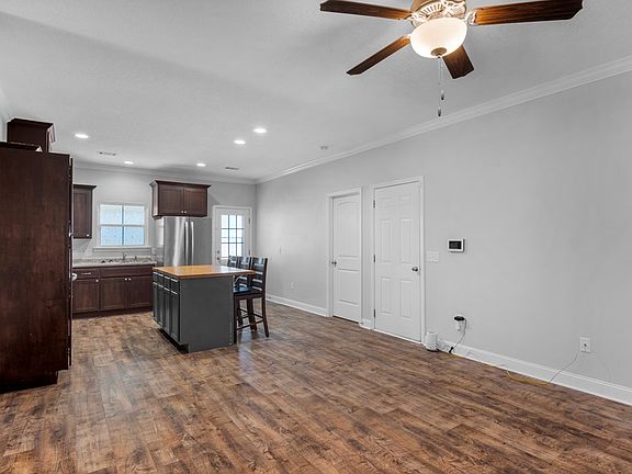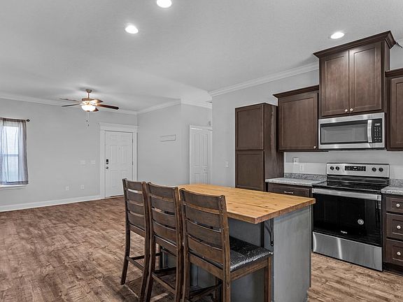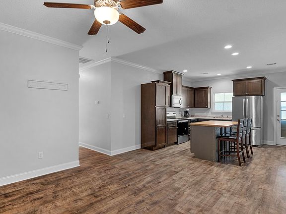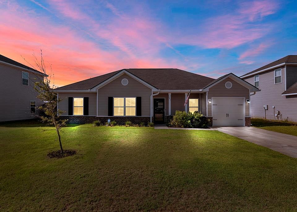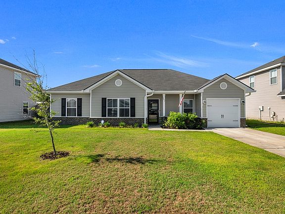 Welcome to this exceptionally maintained home featuring the Maria floor plan by Dryden located in Independence Settlement in Hinesville. This home consists of 4 bedrooms and 2 full bathrooms. Upon entering you are greeted with the spacious living room which opens up to the kitchen featuring stainless steel appliances, an island, and eat in kitchen area. Also, located off of the kitchen is one of the bedrooms. Travel down the hall to the remaining 3 bedrooms, the laundry area which includes the washer and dryer for the buyers convenience, and hall bathroom that is adorned with beautiful board and batten walls along with whimsical floral wall paper. The generously sized master bedroom has a stunning accent wall and includes an en suite bathroom with a double vanity, separate shower, and garden tub accompanied by a tile back splash and gorgeous wall paper accent wall. Enjoy the outdoors either in the screened in porch or custom seating area covered with a shade sail and built in fire pit. This home has it all! Call today for your showing!