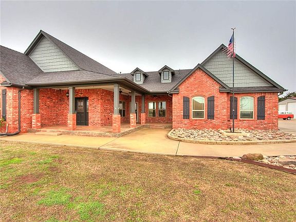 Beautiful home that has been very well taken care of with many extras for you to enjoy. Large kitchen with plenty of storage w dine in eating and a separate formal dining area. Separate office space w indoor 8x8 tornado safe room. Home/garage has spray foam insulation. Equipped with a 20kW natural gas generator with interior auto-transfer switch. Exterior/interior security cameras. Two AC/HVAC units. Exterior features include large back patio with water feature, natural gas fire pit, wood fire pit, covered cook area with rear entertainment with sound control and speakers. Two shops: 30x40x10 wood frame, spray foam insulation with composite roofing, two 10x10 OHD insulated doors, water, 1/2 bath, septic, natural gas heater and 60 amp electric service. RV electric outlet/sewer dump outside. Second shop: 30x50x14 with 14x13 and 10x12 OHD insulated doors, insulated metal frame with electric and sewer piping for RV disposal, with a 25x12 loft for storage. 5" thick extra wide driveway