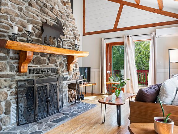 Discover the perfect blend of tranquility and modern living in this beautifully maintained 3-bedroom, 2-bathroom home nestled on a secluded 1.28-acre private lot. Surrounded by mature trees, this serene property offers the privacy and peacefulness of nature while providing contemporary comforts. Step into the heart of the home—a newly renovated kitchen featuring sleek chopping block countertops, updated decor, and modern appliances—ideal for culinary enthusiasts and entertaining guests. The open-concept living and dining areas feature beautifully refinished hardwood floors and new windows that flood the space with natural light, complemented by remote-opening skylights equipped with automated rain sensors. This home features a stunning stone fireplace — a captivating centerpiece in the living area, perfect for cozy evenings. Outside, the recently landscaped backyard is a private oasis. Beautifully constructed retaining walls and new fencing create a perfect setting for relaxation, gardening, or outdoor gatherings. Includes an automatic generator switch ready to have your generator plugged in during power outages. Meticulously cared for and move-in ready, this property offers a rare opportunity to enjoy secluded living with modern amenities.