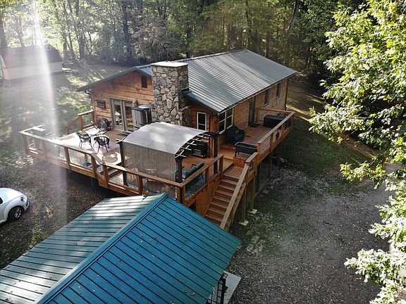 Updated Wood and stone Ranch home on 1 private acre close to Enka High and Hominy Valley Park/Pool. Owners downsizing and ready to pass along this well loved home. Stainless appliances, custom hardwood floors and updated baths are just a few of the updates. Basement is finished and could be a future in-law suite. Main has a fireplace and lower level a wood stove. Outdoors the wrap around deck extends your living area. The 16x30 custom carport also functions as a covered patio wired for a hottub. The home has a metal roof and a large outbuilding with hardwood floors. If you're looking for a great home with a lot of details, then look no further. 1 acre lot is private, and driveway is shared with 2 other homes. 3Br Septic. Washer/Dryer and Ref negotiable. Exterior has video monitoring/security also negotiable. Several newer homes built or under construction in the neighborhood. Buyers house didn't sell, had contingent offer to purchase. So this one is back on market.
