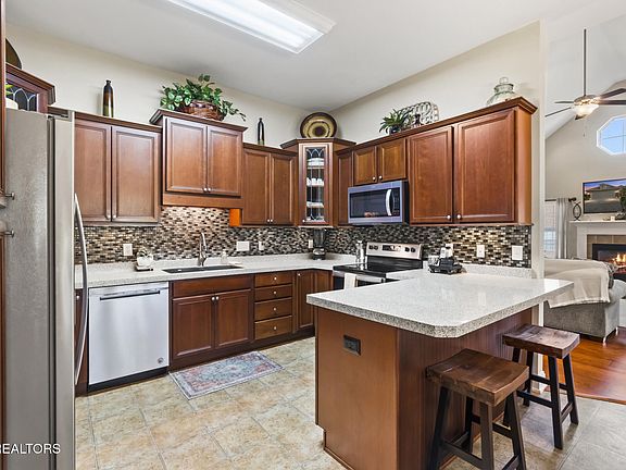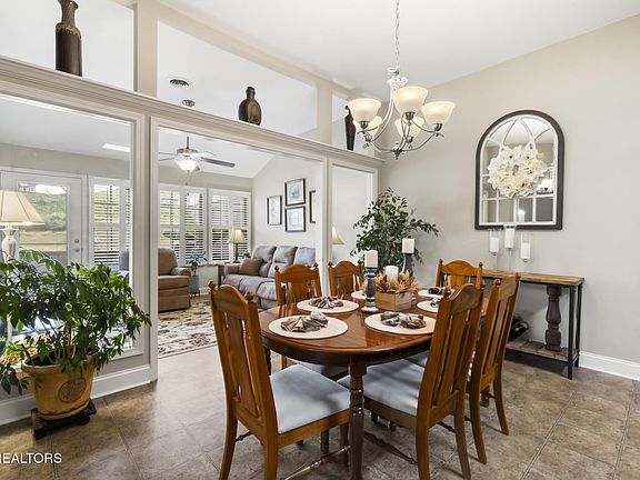 This move-in-ready 3BR/2BA condo offers the ever-popular zero-entry floor plan—true single-level living with no steps. Inside, the airy open design showcases elegant hardwood floors, vaulted ceilings, a dedicated laundry room with utility sink, and a light-filled sunroom. The owner's suite also boasts a vaulted ceiling, walk-in shower, double vanities, and a spacious walk-in closet with built-in shelving. Step outside to a large, private patio designed for both relaxing evenings and entertaining guests. Additional highlights include newer whirlpool kitchen appliances, granite overlay countertops, up-scale plantation shutters, new HVAC (2024), abundant storage and a two-car garage. Perfectly situated near parks, marinas, shopping, and dining in Lenoir City, with Turkey Creek just 15 minutes away and quick access to I-75 and I-40. This is low-maintenance living that balances comfort and convenience!
