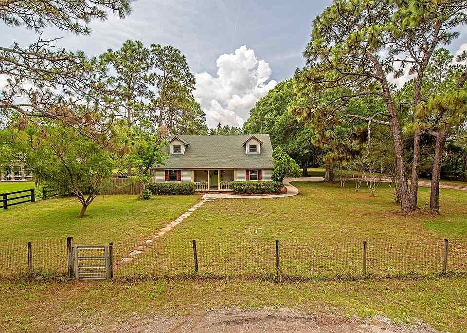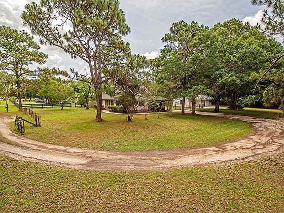 Country Living close to town, just off Wildwood and 5 minutes from Publix. This home sits on a fenced acre backing up to timberland for a secluded and private setting. The 1,200 square foot concrete block outbuilding will house all your toys! This home features a first floor master and dedicated office space with two additional bedrooms upstairs. The screened porch is perfect for lazy afternoons and taking in the nature that surrounds you.