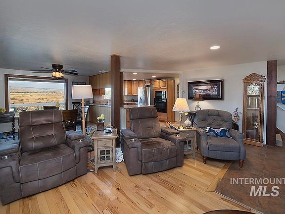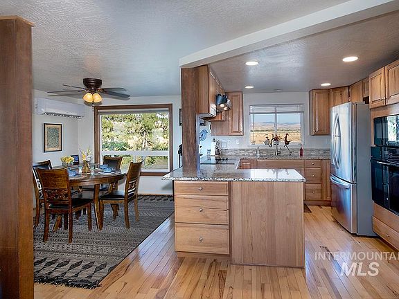 Secluded Home w/5 acres in beautiful Indian Valley, Idaho! Gorgeous views of the mountains, watch the wildlife from large picture windows, deer come right up to the house! Close access to Ben Ross Reservoir for fishing & Weiser River trail. 4 bed, 2 bath, 2080 sq ft home, cozy wood stove, hickory cabinets & floors, granite counters, tiled floors in bath & laundry, pantry and master BDRM on main floor. 2 detached garages, storage shed, 2 refrigerators, dishwasher, washer & dryer, chest freezer, mower, firewood and tools included. House shows pride of ownership and has been extremely well maintained. No HOA, or close neighbors. Mature landscaping and a grove of trees on south western corner! The lawn turns beautifully green again, in the fall. You can see for miles in every direction with ideal hilltop location at the end of private driveway. Call to make this quiet country hideaway your home today!