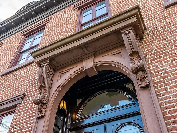 Welcome to The Mansion, located in the Harsimus Cove Historic District of Downtown Jersey City. This six-unit adaptive reuse boutique condo project was designated by the Jersey City Landmarks Conservancy upon completion in 2015. The exterior structure presents American Gregorian architectural significance including gable roof with dormer windows, brick exterior, crown dentil molding, oversized double hung windows, brownstone accents and wrought iron gated landscaped space. This unit enjoys the unofficial use of a private backyard patio space. Inside the home you will enjoy warm and inviting décor combined with quality craftsmanship. This corner home offers high ceilings and massive windows for great natural light and garden lined views. Large kitchen with stainless steel appliances, marble countertops, upgraded backsplash. Dining room can accommodate an oversize table and was upgraded with dimensional accent walls and custom lighting. Master bedroom suite is very spacious, with walk in closet and private bathroom. In unit washer dryer. Nice closet space with closet organizers in place. Two bedrooms, two bathrooms,1341 sq ft. Plus, a large private storage unit in the basement. Conveniently located by Hamilton Park, Van Vorst Park, Farmers Market, Newark Avenue "Restaurant Row", both Grove Street & Newport PATH stations, supermarkets, Newport Mall, New York City, and destination shopping and nightlife.