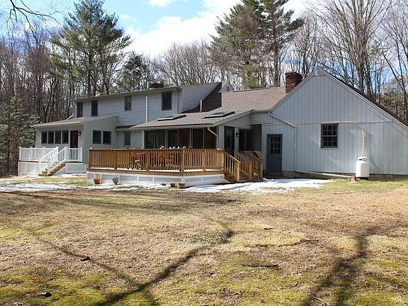 Desirable Leeds location updated in all the right places! On a circular driveway, setback from the road, sits this executive Cape offering a lovely mix of open concept & formal living spaces. Bright & spacious eat in kitchen, updated appliances & granite counters flows seamlessly into a family room with fireplace & from there into a newly added sunroom with oversized windows perfect for enjoying all seasons. Just off the kitchen is the formal dining room with handsome cherry corner cupboard and directly off the center hall is the gracious formal living room with fireplace & cherry mantle. Newly expanded home office/studio with built in bookshelves & exterior access plus full bath with laundry complete the first floor. Up are 3 generous sized bedrooms, full bath with double vanity plus a large walk-in cedar closet. Oversized 2-car garage/workshop area, large shed/barn & good-sized fenced in yard & 2 newly added composite decks. Full cellar with high ceilings offers added possibilities.
