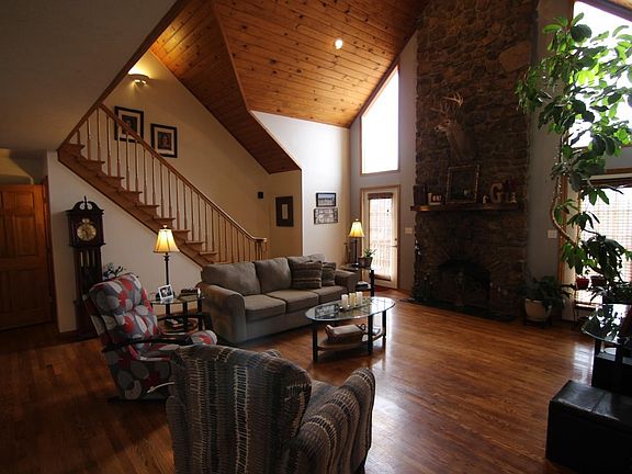 This immaculate home is nestled on over 15 acres just minutes outside of town. You get both the convenience along with privacy with this well built home. When you walk in the front door this home just opens up, it is the perfect house for a family who loves to entertain. The master bedroom along with the washer and dryer are all on the main level, huge open living room with rock fireplace, formal dinning room, hardwood floors throughout, open kitchen over looking into the living room makes this home flow very well. Upstairs offers 3 bedrooms with their own bathroom and an over hanging hallway to see into the living room. Downstairs there is a finished in-law suite that could potentially be an apartment. Cannot forget that there is plenty of unfinished square footage that is easily ready to finish to add more to this home right now it is open with a bar and an informal sitting area to enjoy the big games! This home is one to see!