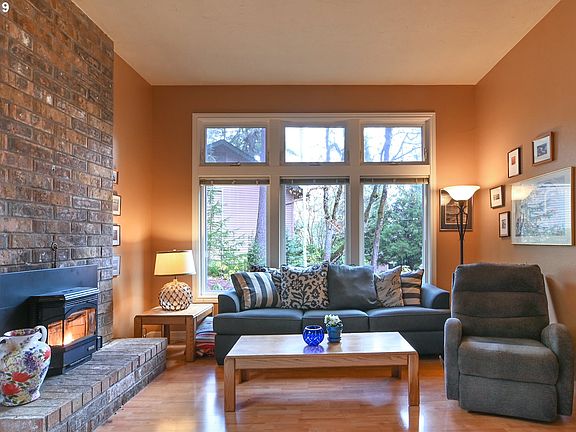 Very private tandem home at end of cul-de-sac. Open floor plan features living room with high ceilings, brick fireplace and wall of windows. Master bedroom has patio and ensuite bathroom. Spacious second bedroom upstairs with skylights. Don't miss 11 x 10 finished bonus room in garage. Located in a quiet neighborhood with walking trails to enjoy wildlife.