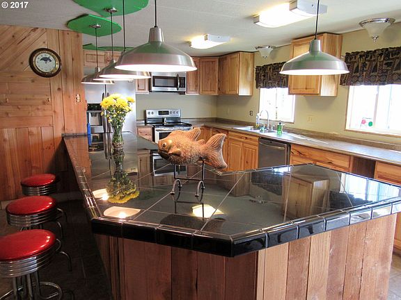 Rare 4 bedroom, 2 bath home. Beautiful kitchen remodel featuring lots of counter space, plenty of cupboards, and stainless appliances. Open living space with kitchen, dining area, and living room. Bedrooms and bathrooms need some TLC. Ready for your ideas! Slider off dining area to backyard and deck with firepit. Carport with storage shed. Pretty corner lot plenty of grass and trees.