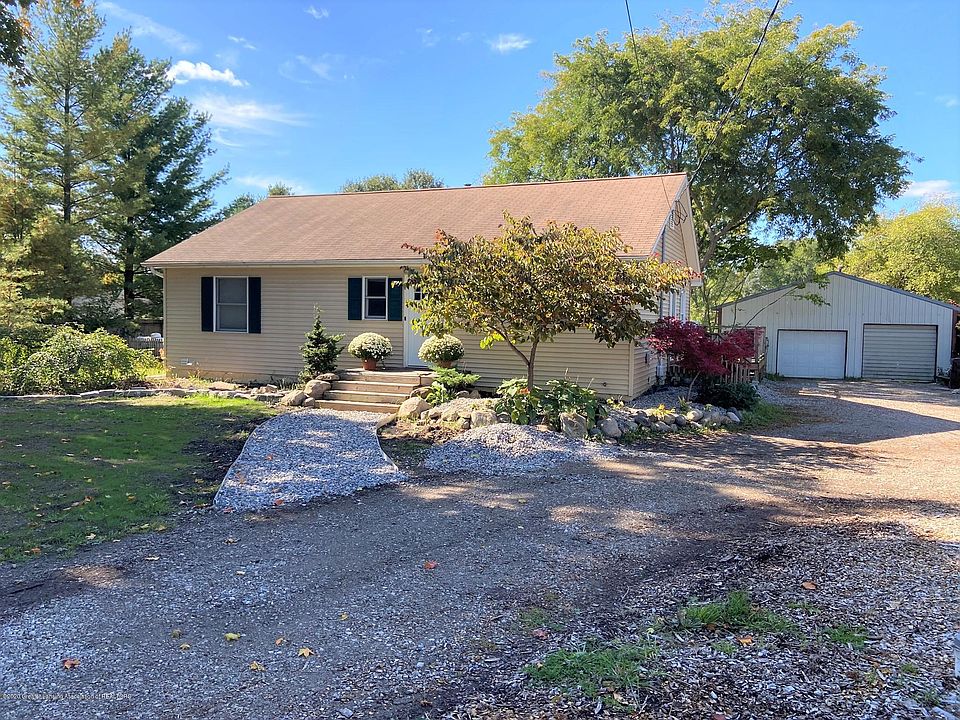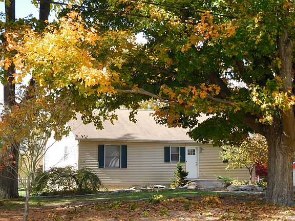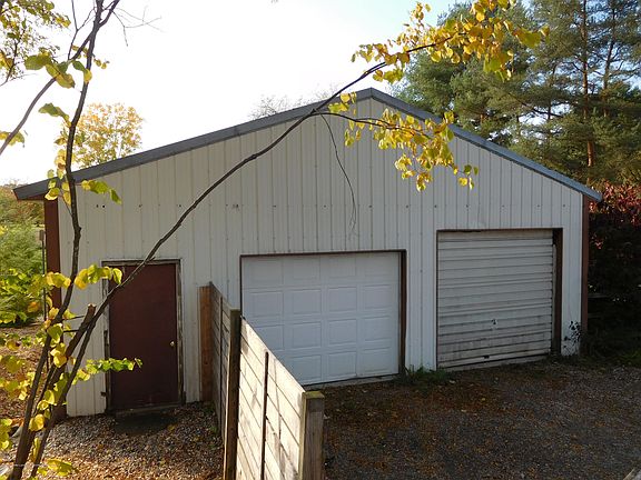 Welcome to your own piece of country living! 2.8 acres with a 1200 sq ft ranch which features beautiful view of fenced back yard through spacious picture window. Wood stove gives cozy comfort on chilly evenings. Both bedrooms are generous sized and 1st floor laundry room is a plus. Bunk bed/loft is included in one bedroom. Kitchen comes with appliances, concrete counter top and inviting breakfast bar, Basement finishing is a work in progress with existing materials included for buyer to complete. Extra Walk out entrance ( bilco door) to back yard offers versatility. 2 car garage/pole barn is partially cemented on floor and has workshop area. Convenient circle driveway and pleasant landscaping. Just call this one HOME! Seller reserves yard swing and swing set. Buyer to assume assessments.