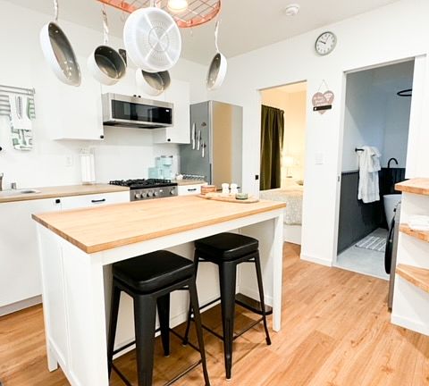Your very own tiny home with private entrance. 1 bedroom 1 bath. Includes everything you will need including a full kitchen as well as an on-site washer/dryer. Utilities are included.