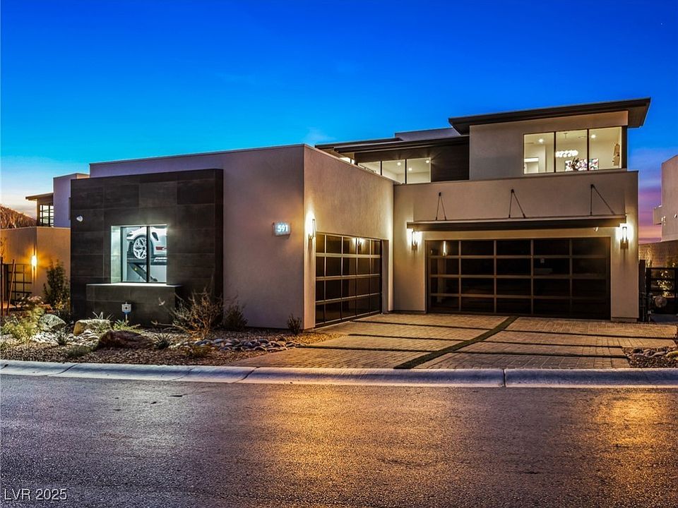 Discover Luxurious Living in MacDonald Highlands. Experience the epitome of luxury with this breathtaking turnkey estate, perfectly positioned to capture unparalleled views of the Las Vegas Strip, the golf course, and the valley. From the moment you enter, you'll be captivated by the home's elegance, meticulous design, & high-end finishes. The backyard is your private oasis, featuring a stunning rim-flow pool, a circular spa, a media wall, a pergola-shaded dining area, and multiple fire features—all set against a backdrop of mesmerizing views. Spanning 5,618 sq ft, this estate boasts: 4 en-suite bedrooms (4th Bedroom is Wellness Center), sky loft w/media wall & wet bar, 4 car garage… Every detail has been thoughtfully curated, from state-of-the-art appliances & Josh AI voice control to Lutron motorized blinds, custom switch glass, bespoke cabinetry, steam room, floating wood staircase, level 5 drywall finish, & situated on an expansive lot. Don't miss this opportunity, it's 1 of a kind