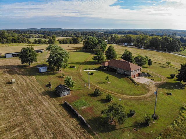 Country living at its best! This beautiful 40 acre property has panoramic views, multiple building sites and a stunning 3300 square foot, all brick home. Featuring 3 bedrooms upstairs and an additional non-conforming bedroom on the lower level, spacious living areas as well as a hot tub/sunroom; this home has something for everyone! The large inviting kitchen boasts custom oak cabinetry and sparkling hardwood floors. The basement has garage access, a wood burning stove, tons of storage and space for a craft room or office. Beautiful acreage with wet weather creek! Amazing views! Short 15 minute commute to Springfield and easy access to I-44.