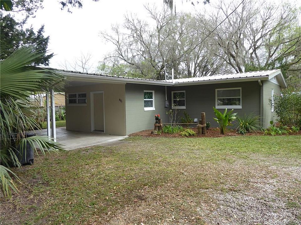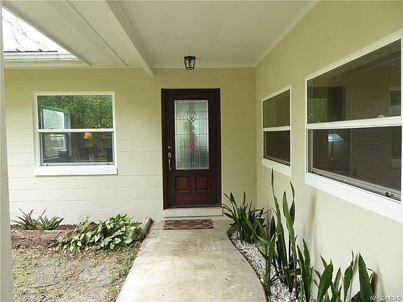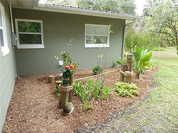 Clean lines & cool colors of this updated & energy-efficient Withlacoochee River-view home reflect its park-like, just under half-acre with sheltered canal-side setting. Fruit trees & tropical plants abound to frame the landscape & surround the house. Don't miss the scaled-down "cracker shack" pumphouse to welcome your visitors with a bit of Old Florida whimsy. Double lot offers privacy in small subdivision, w/lots of room to park RV, add a garage, shop, etc. Efficiency features include 1.5-ton AC/Heat through-wall unit w/heat pump, air circulation system between closets, metal roof 2016, 200 amp electrical, thermal pane windows, insulated attic, tankless water heater, plus LED lighting throughout. Kitchen features Ikea cabs & drawers, walnut counters, quality SS appliances. Inlaid-mosaic, terracotta tile floor & upgraded lighting. The small 3rd bdrm is located in a later addition to house, across from 2nd bath, and is well-suited for use as a private guest suite or office.