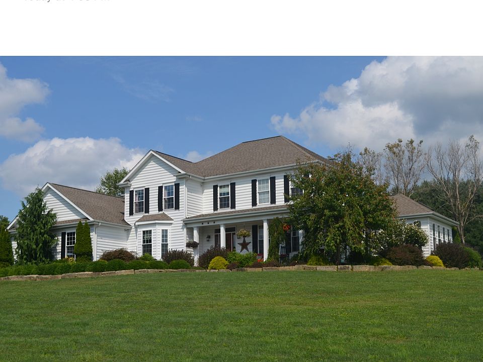 Charming white farmhouse that sits on 5.5 acres. Wrap around front porch with huge patio in back. Insulated and drywalled 30x40 detatched garage with finished recreational room above. Beautiful rustic hand hewn beams, stain glass windows, and sliding barn doors through out the interior. A French country kitchen flows into a cathedral family room, further flowing into an airy bright sunroom. The home boasts of three fireplaces, two which are wood burners to heat your home on those fridged winter nights. A back screened in porch with stone walls, hand hewn beams and a wood ceiling is a great way to spend summer nights. Come see the privacy and beautiful country views.