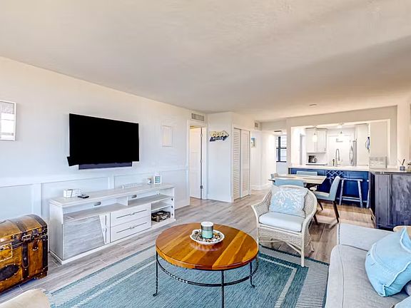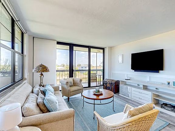 Escape to this charming fourth-floor Gulf-view condo, perfect for a relaxing coastal getaway! Situated in the South Seas Club, a sought-after high-rise complex overlooking the Gulf of Mexico, this spacious condo is a serene retreat. Some of the fantastic amenities including a heated outdoor pool, tennis courts, pickleball courts, BBQ area with charcoal grills, gated security, and a private beach shared with the community. Boat enthusiasts will appreciate the 134-slip boat dock, slips are available for rent for additional fee. The 2 bedroom, 2 bathroom condo features an open-concept floor plan with seamless living areas and a private balcony where you can take in the breathtaking Gulf views. Relax in the cozy living room, engage in fun games, or get creative in the fully-equipped kitchen, ready for you to prepare your favorite meals. Enjoy dining at the beautiful table, or use the breakfast bar for additional seating. A rental application is required, including sensitive information submitted directly to the HOA within three days of booking. Check-in time: 4:00 p.m. Check-out time: 10:00 a.m. Quiet hours are from 10:00 p.m. to 8:00 a.m. No smoking allowed on the premises. No pets allowed. The condo is located on the 4th floor. Free parking is available for one vehicle. Renters must be 21 years or older to book this property. Monthly rental. No pets allowed. Furnished condo, 2 bedroom, 2 bathroom, and laundry in unit. April $5800, May $5500, June - September $5000, October - November $6000, and December $6800. $100 Association application fee is additional.