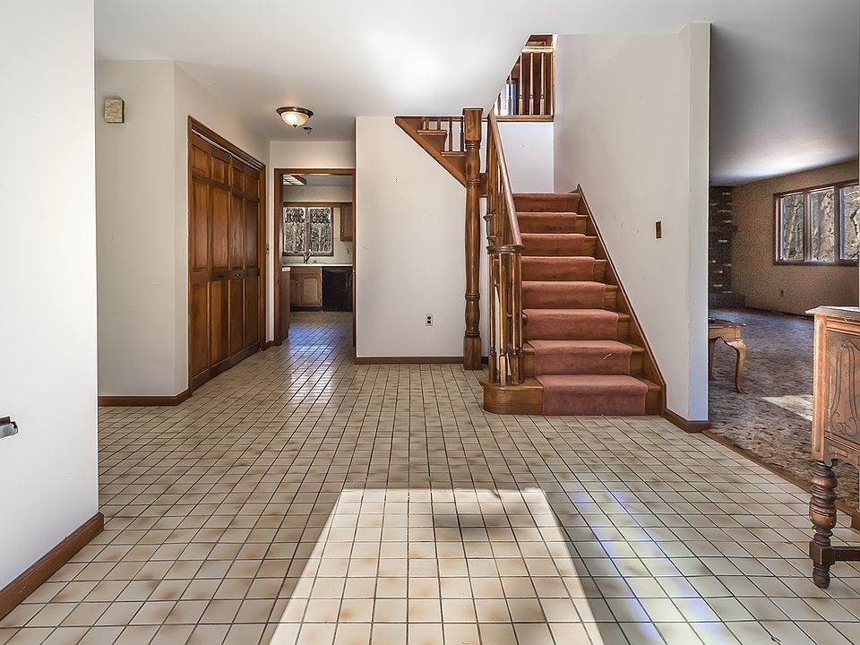 Set far back from the road (approximately 260 feet) with a wooded lot between the house and road, providing lots of privacy between the house and Tabernacle Road. A circular gravel driveway leads to a side turned 2 car garage and plenty of parking. Vinyl and stone exterior. Every room in this home is super sized, room enough for everyone. This home is being sold 'as is' and it is a fixer upper, seller will do no repairs. Buyer may do a home inspection for their informational purposes only. Foyer entry with ceramic flooring and turned wood staircase with decorative wood pillar, lots of closets and door to basement. Living room with wall to wall carpeting, windows to the front yard, wood burning fireplace and open to the dining room. Formal dining room with chandelier and door to the deck. Large family room with wall to wall carpeting full brick wall with fireplace woodstove insert, casement windows to the front yard and French doors to the solarium. New solarium with ceramic and wood flooring and great views of the grounds. Large kitchen and breakfast room with ceramic flooring, wood cabinetry, all appliances included, door to deck. There is also a powder room on the main level. A turned wood staircase leads to the upper level with 4 bedrooms, 2 full baths and laundry room. Master bedroom with walk in closet and full bath with jetted Jacuzzi tub, double sink vanity and shower stall. The laundry room includes the washer and dryer, cabinetry storage. Full basement with French drain, 2 HVAC, water heater, well, electric panel - finish this area off for even more living space. Door from basement to garage, the 2 car garage is partially finished off. This home sits on 2.62 acres in the woods, with almost 3,000 square feet of living space. Wood deck on back of house. The possibilities are endless, let your imagination go wild. While this home is being sold 'as is', the seller will offer the buyer a one year home warranty.
