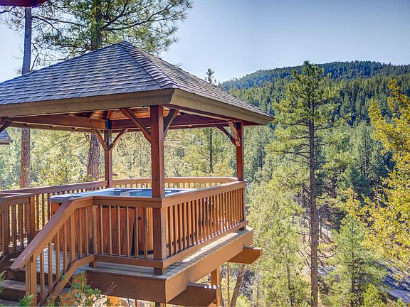 - Exterior Features: Covered Porch/Deck, Tall Pines on Lot, Storage/Utility Shed, Porch/Deck, Landscaped, In the Trees, Covered Patio, View of Mountains, Satellite Dish, Panoramic Views, Work Shop, Spa/Hot Tub