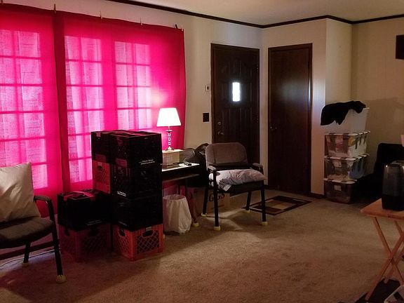 Nice brick home with large detached shop, 1080 sp ft, and two outbuildings. 2 bedroom 1 bath home has nice sun room. Lots of windows and wood fire place in living room. Right across from the city park.
