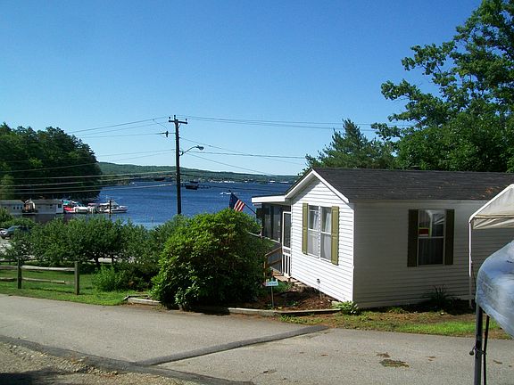 52 x 14 manufactured home with front addition 52 x 14 has 7 windows facing Paugus Bay. Located at Resort on the bay low fees for water front view $2750, yearly May thru Oct. private beach and boat dock across the street Has garage door for under unit storage of kayak ,summer furniture New roof ,interior and exterior paint in excellent condition.