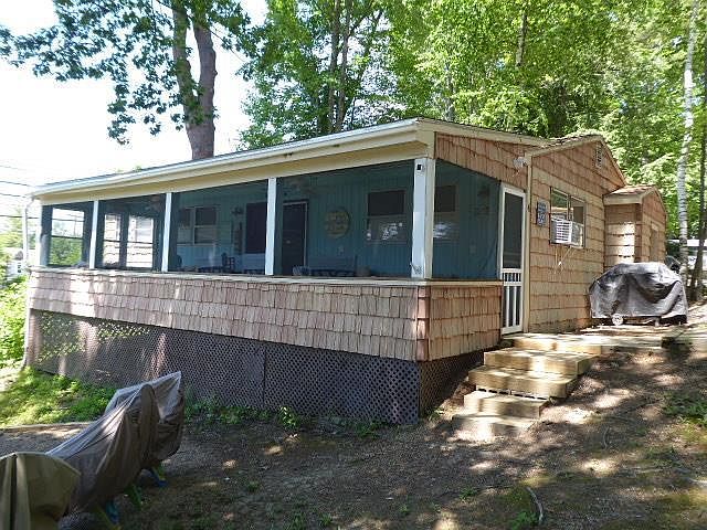 Seasonal Cottage in Laconia with Water Views. This well maintained and updated cottage is for sale at Resort on the Bay. The 32-foot Screened Porch overlooks Lake Winnipesaukee. The park has Beach access on Paugus Bay and a waitlist for docks. The roof was replaced in 2017 and the unit has Vinyl shingles for low maintenance. The Primary Bedroom has a Washer and Dryer. The Bath and Flooring have been updated and most of the unit has fresh paint. The Fire pit/Patio was added over the last few years and has Water Views. This large cottage has 4 bedrooms and a nook/den which provides an additional sleeping area. Centrally located to many of the Lakes Region amenities. Being sold Partially Furnished. Showings begin Saturday June 25th. Agent has an ownership interest.