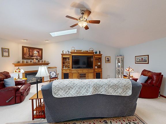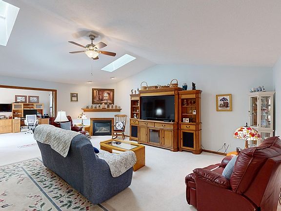 Remarkably well-maintained condo (zero lot line). Main floor includes a large living room with cathedral ceilings and skylights, large primary bedroom with full bathroom, main floor laundry. The mostly finished lower level features a family room with gas fireplace, potential 3rd bedroom, and 1/2 bathroom. Updates include kitchen flooring, newer roof, landscaping, and garden shed. Radon mitigation system install in 2011. Beautiful back patio. Conveniently located at the end of the cul-de-sac.