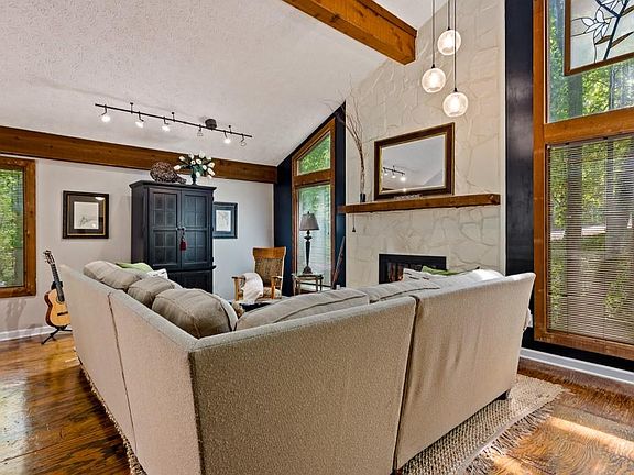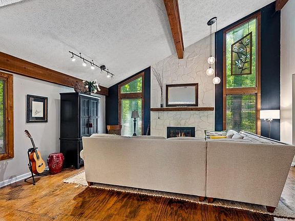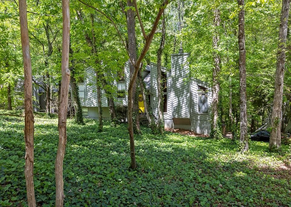 Light filled contemporary retreat sited on a nice corner lot with lush wooded views. Convenient location in heart of E.Cobb! Minutes to shopping/dining/and Award Winning Schools! Spacious Family room with cathedral ceilings and pretty fireplace, Large sunny dining room. Kitchen is open to DR and Breakfast room. Access to large deck from DR. Upstair large primary BR with on site bath and closet space!, 2 secondary BRs with hall bath. Lower level den with built-in bookcases, additional BR and full bath! Large Laundry Room on this level and access to the two car garage with additional storage areas. Home is move in ready. Opportunity to renovate and update to your taste. Home at corner of a small private cul de sac in desirable River Springs!If buyer is not represented by agent at showing the commission shall be reduced to 2%