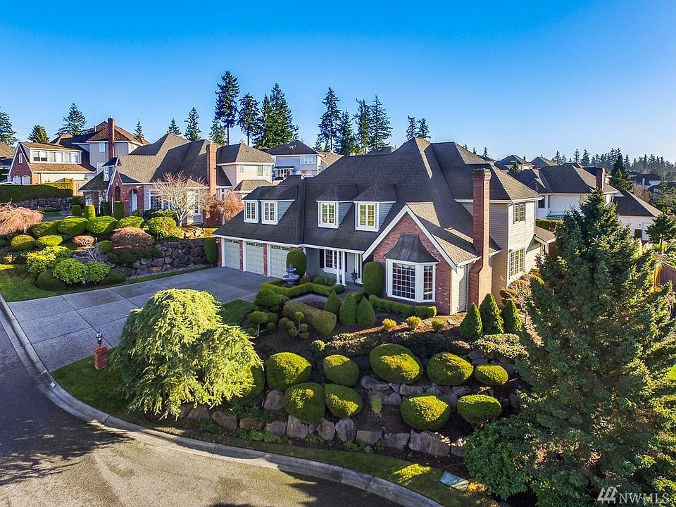 Simply stunning, immaculate sound and mountain view home situated in the sought after community of One Club House Lane. Pride of ownership exudes through out this immaculate home with NEW carpet. Spacious family room with cozy fireplace and a breakfast nook with French doors to the large outdoor view deck and beautiful fully fenced backyard. Luxurious owner's retreat has great views of the Sound and Olympic Mountains.If you love to cook then this updated view kitchen is a dream with gorgeous cabinets, high end stainless appliances including Wolf double ovens and a Wolf gas cooktop, Miele dishwasher and Sub Zero refrigerator. Huge walk in pantry,built in desk w/a view. Many great updates incl a newer roof, furnace and air conditioning.