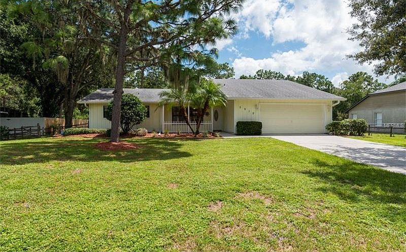 Welcome to a home that you will be proud to own! Fantastic Braden Woods 3 BR/2 BA pool home which is ready for holiday celebrations, birthdays and overall entertaining! Sitting on just over a 1/2 acre, you'll have plenty of privacy, room for a dog run and lots more! You'll enter the home onto the newer tile (looks like wood) flooring that has been installed in the Living Room and Kitchen. In the Kitchen, you'll notice wood cabinetry, newer stainless appliances, updated light fixtures/fans & mosaic glass backsplash. The breakfast bar is a great place to grab a quick bite to eat. Steps away from the Kitchen, you can be outside on the Lanai for grilling and/or enjoying the sparkling pool. Beside the Kitchen is a spacious 15'x 23' Family Room with laminate flooring which is separated by French doors (to keep the noise down from guest bedrooms when entertaining!). Could also be a location where a sleep sofa is placed so could serve as a guest room when necessary. Master Suite sits on this side of the home offering privacy from the 2 guest rooms on the other side. Master Bath has been updated with Double Sink Vanity and Walk-In shower with stone surround & listello. To the left of the Living Area is the updated guest bath with single vanity. Both Guest Bedrooms have walk-in closets- lots of storage! AC was replaced in 2014 and roof in 2010. Property being sold As-Is with right to inspect & comes with a home warranty for the buyer up to a value of $475. Great home-great price-great schools-great neighborhood!
