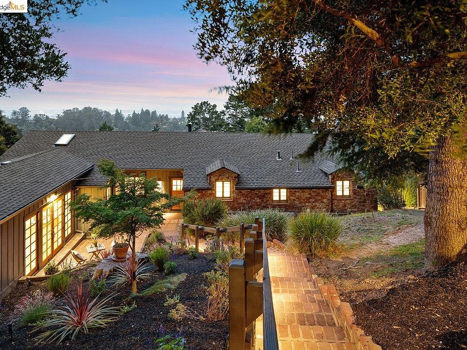 Beautiful Retreat with Panoramic Views and a Yard! Located in the sought-after Piedmont Pines neighborhood, this beautifully remodeled home combines cottage charm with modern elegance. Situated in the lower part of Montclair, just a stone's throw away from the vibrant Montclair Village, schools and hiking trails, this home offers unparalleled convenience and serenity. Enjoy breathtaking panoramic views of the Bay, including the San Francisco skyline, Bay Bridge, and Golden Gate Bridge. Multiple expansive decks and a flat backyard provide perfect spaces for outdoor living. Set back from the street, the home offers privacy amidst beautifully landscaped gardens with majestic redwood, cedar, and oak trees. Inside, large southwest-exposed windows and refinished light hardwood floors create a bright and inviting atmosphere. The living room and primary suite boast high vaulted ceilings. Newly remodeled kitchen and three bathrooms add modern convenience. Primary bedroom includes skylights for stargazing. The wood-burning fireplace in the living room ensures cozy winter evenings. Very spacious family room features French doors overlooking the front yard and brick patio. Seismic upgrades, 2 garages and a separate large storage room/office add practicality. >> www.5910Ascot.com <<