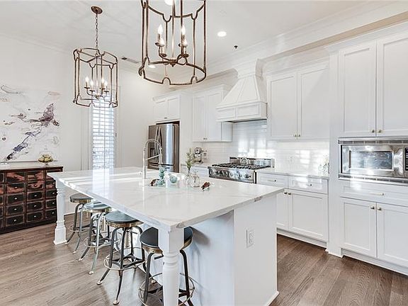 Stunning bright white, open, end unit condo in the highly sought after Vickery subdivision! Gorgeous white kitchen features quartz countertops, subway tile backsplash, under-cabinet lighting, stainless steel appliances including Viking gas range, with open views to the family room. An expansive balcony overlooking the courtyard area right off the family room provides extra room to entertain! Owners Suite features spa bath and large walk-in custom closet. Additional large bedroom with ensuite bathroom, all on one level. Site finished hardwood floors, 10 foot ceilings & Designer grade light fixtures provide ambiance to this classy, chic condo. 2 car garage also included with this condo for extra storage space. Close walk to all things in the live/work/play Vickery Community: YMCA, shops, restaurants and walking distance to top rated Forsyth County schools!