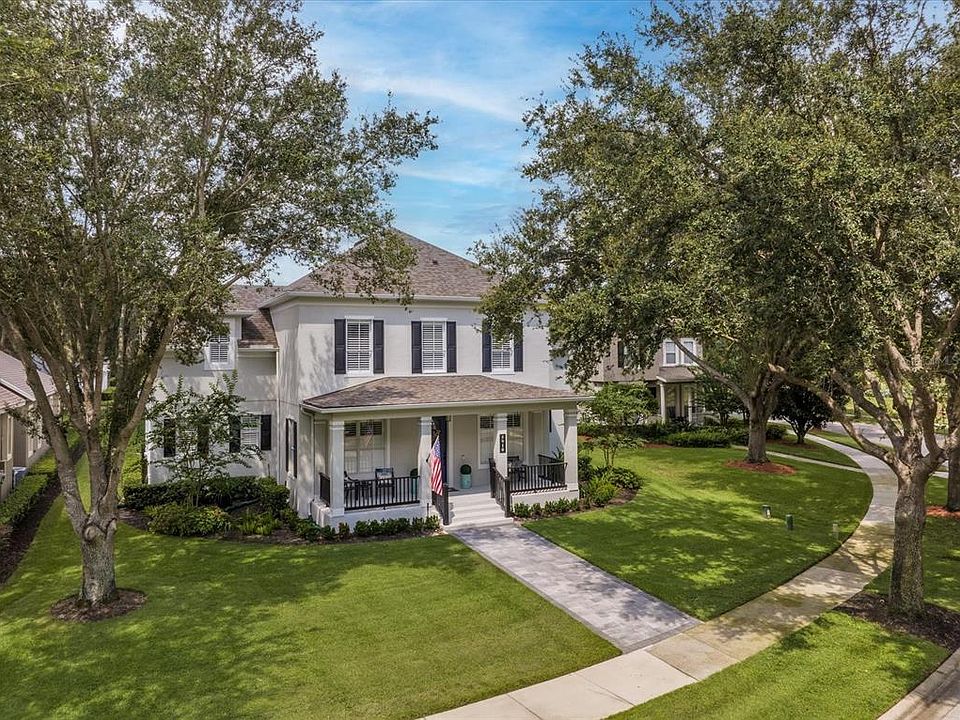Keene's Pointe - 24-hour gated/attended community in beautiful Windermere, Florida. This better than new home has been completely renovated from top to bottom. From the moment you enter you are greeted by neutral wood-look porcelain tile throughout the first floor. There is a formal dining room, functional office with French doors for privacy, and living room with built-in cabinetry and wine refrigerator for entertaining. The primary suite is on the first floor and boasts two walk-in closets with custom shelving and a bathroom with two vanities with quartz and waterfall edges, freestanding tub and large shower with bench and two shower heads. The kitchen has been updated with KitchenAid appliances, Dacor paneled refrigerator, shaker cabinets with pull-out drawers, hidden laundry room with cabinetry, pantry, and two spacious islands with waterfall quartz edges that overlook the spacious family room with stone accent electric fireplace. The staircase has been updated with hardwood steps and an iron/wood railing and leads to the second floor with three bedrooms, two fully updated baths and a spacious bonus room with built-in desk, cabinetry and beverage refrigerator. On first floor there are 8' French doors in the living room and family room leading out to the 18x30 screened porch with summer kitchen. The back yard is spacious and has an electric fence for pets, new privacy hedges, and 100 ft paved driveway to accommodate large families or guests. There is also a 3-car garage with overhead storage racks, custom finished flooring and custom cabinetry, as well as an attic with plywood flooring for extra storage. This amazing home also features a new roof, tankless water heater, AC units, sprinkler well, gutters, garage doors, - all added since 2021. All new interior/exterior paint, lighting, hardware, plantation shutters, linear slot AC vents, and so much more! Everything in this home has been updated and is move-in ready. Windermere is home to top-rated public and private schools, close to shopping and dining, as well as expressways and tourist attractions. A must see!!