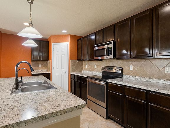 Welcome to this spacious two-story home in Northeast Crossing, designed for both comfort and function. Just off the entryway, a private office makes working from home a breeze. The living room impresses with soaring ceilings and a striking chandelier, while the kitchen is a dream with custom cabinets, ample counter space, a center island, and a wine or coffee bar to start or end your day right. The primary suite is tucked downstairs and features high ceilings, plush carpet, a garden tub, separate shower, dual vanities, and a generous walk-in closet. Upstairs offers plenty of room to spread out, while the laundry room-with washer and dryer included-adds everyday convenience. Step outside to a large backyard with a privacy fence and spacious patio, perfect for weekend barbecues or quiet evenings under the stars. Ideally located just minutes from Ft. Sam Houston, BAMC, Randolph AFB, and plenty of shopping and dining options, this home blends space, style, and location.