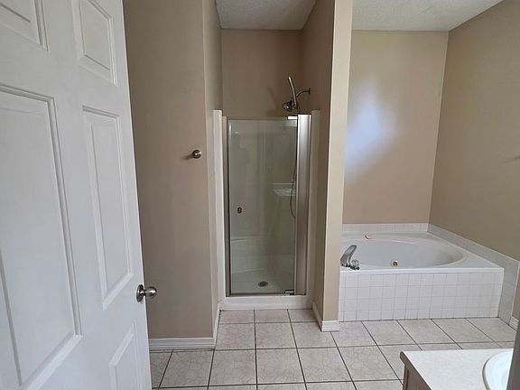 Privacy fenceCovered deckWood burning fireplaceGarden tubTile flooringSeparate shower