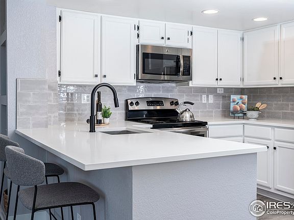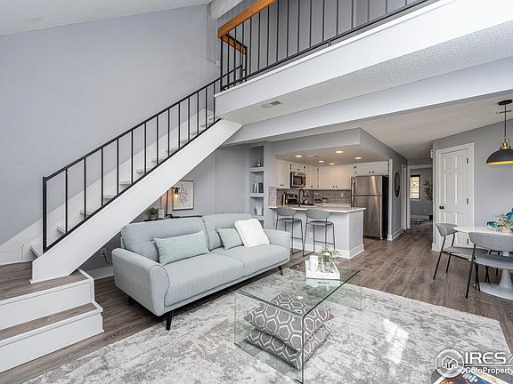 Enjoy sunset mountain views at the end of each day while sitting on your west facing, second floor balcony, nestled in the amenity-rich Powderhorn condos just north of Boulder. Rarely available B condos here offer one of the largest floorplans in the complex with two conforming bedrooms (one primary suite with attached bath), two full bathrooms plus an upstairs loft. Freshly renovated with quartz countertops, stone fireplace, quality finished floors and trim work, tiled entry and baths, and luxury lighting. Large treehouse windows bring in brilliant light and vaulted ceilings offer an airy, spacious oasis in the trees that feels much larger than its 1,041 sq ft. The upstairs loft is the perfect space for home office, workout/yoga/meditation nook or art/music studio and there's still room for a real guest bedroom or roommate in the second bedroom. Washer and dryer included. Garage just below for storing all of your bikes and gear AND no more scraping snow off your car! Plenty of guest parking right out front and in designated spaces throughout. Enjoy all of the amenities Powderhorn has to offer - summer pool parties, hot tub, tennis courts, park & paths. Close to Boulder Reservoir, Proto's Pizza, Apertivo, Human Kind Coffeeshop, Avery Brewery, Finkel & Garf Brewery and grocery stores nearby. This is the one you've been waiting for. Ask About Preferred Lender Rate Buydown and Rate Rebound Program. See Documents tab for more info.