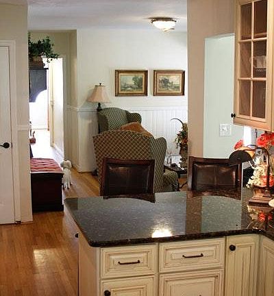 Open floor plan, hardwood; top of the line kitchen cabinets, granite, SS Kitchenaide appliances; filtered water; 20x15 deck overlooking 100ft x 200ft private back yard; 3/4 acres total, vaulted ceiling sunroom with beams, travertine tile, and floor to ceiling windows; 3 bd; two renovated ba; double pane windows throughout; dining room, living room and sunroom connect to kitchen. Walkout basement with sunny workout room. ADT home security system ready for hook up. Washer and dryer included. Parking pad next to one car carport. Only 3 sides fenced but you can install an electronic fence in back if you choose.