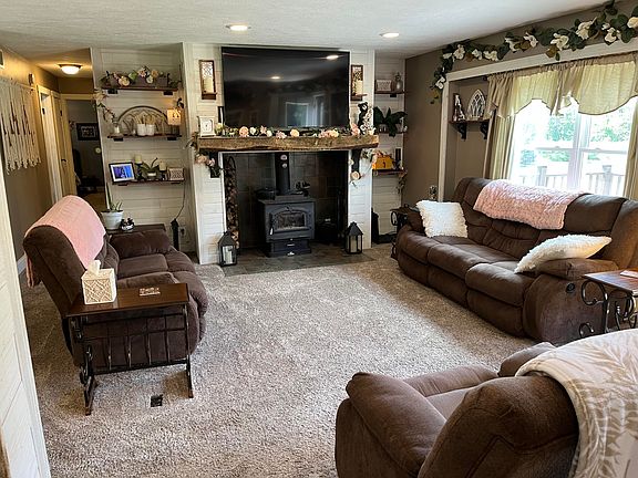 Stunning 4-Bedroom, 2-Bathroom home offering 1750 square footage of living space. Home Features include open floor plan, wood burning fireplace in living room, master suite with a large walk in closet and private bath. Home is cooled by central air and heated with a full house forced air furnace. Exterior features includes a 30 x 40 finished pole barn with RV hook up and 200 Amp Electrical service in pole barn. Home has a gorgeous stocked pond with attached decking for entertainment. All of this situated on close to 11 acres of land. Property is well treed and set up for hunting.