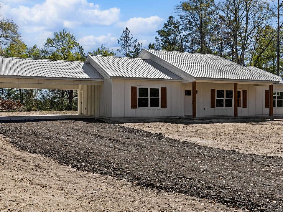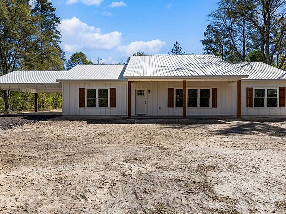 NEW CONSTRUCTION SPLIT FLOOR PLAN HOME - HIGH SPRINGS, FL - BUT JUST OVER THE LINE IN GILCHRIST COUNTY! PAVED ROAD! This beautiful three-bedroom, two-bath home, located in Spring Ridge Ranchettes, is so peaceful that you won’t want to leave. The kitchen features granite countertops, a kitchen island, and the option to choose your appliances! Head through the barn door & you will find more counterspace, crafted with butcher block, and a built-in pantry. Just past this is a separate laundry room. Luxury vinyl plank flooring throughout and 9ft ceilings. The living room offers a cozy electric fireplace with a floor to ceiling fireplace surround, creating warm and inviting ambiance. The vaulted ceiling with tongue and groove pine only adds to the luxury feel of this home and country charm! The master bedroom features an accent wall, a walk-in closet, & an en-suite bathroom with tiled floors, a tiled walk-in shower, and marble countertops! The guest bathroom also features tiled floors, a tiled surround combo tub and shower, and marble countertops! Step outside onto either the covered front or back porch and enjoy true serenity here! This new build also offers a 2-car attached carport, milled driveway, and a 1-year builder warranty! Located in Gilchrist County with low property taxes and "A" rated schools. The best part? Several natural freshwater springs just a few minutes drive away, making it easy to enjoy nature and fun-filled water activities. Don’t miss this exceptional home!