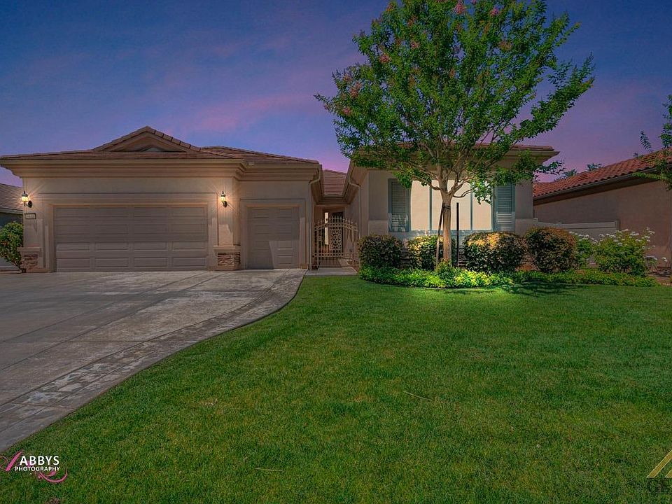 Immaculate home in Solera, 55+ at Kern Canyon by Del Webb! This popular Willow floor plan with gated entry features a large open concept kitchen with granite counters, a huge island overlooking the formal dining and spacious great room with French doors leading to a covered patio w/built-in BBQ and a beautifully landscaped backyard. The Master suite includes a nice sized walk-in closet, double vanity bath with a separate tub and shower. The spacious guest bedroom with its own private bath also has a walk-in closet. Hall includes lots of storage; double doors open to an office/den with a powder room nearby for guests. Plantation shutters throughout! Indoor laundry w/sink and pantry, 2 Car + golf cart garage has a built-in storage room. This is resort style living at its best and located within walking distance to the Clubhouse, library, gym, pool, tennis/pickleball courts and bocce ball courts with easy access to park and nearby Rio Bravo golf course. Make your appointment today!