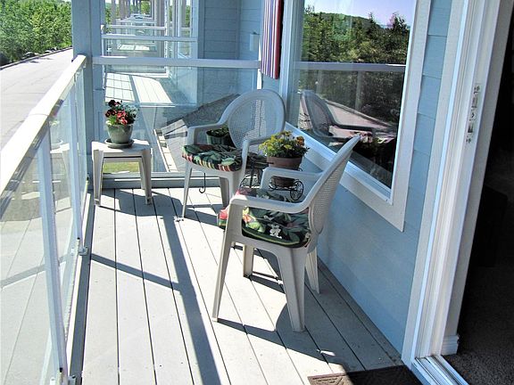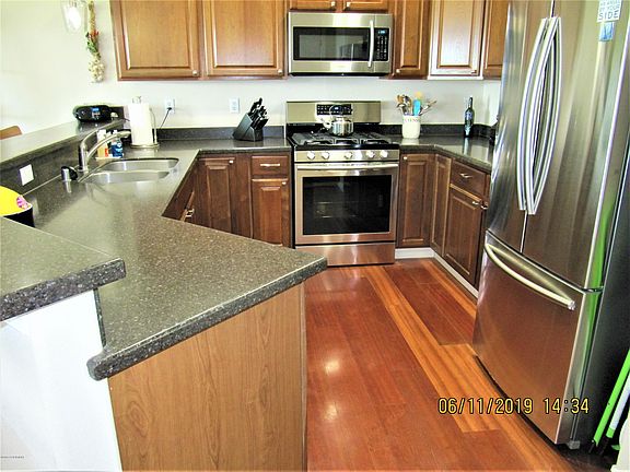 Stunning, panoramic view of the mountains and Knik Arm.This lovely townhouse style condo has many upgrades including newer appliances, new furnace, Rinnai on demand HWH and air conditioner. Kitchen has solid surface counter tops and a gas stove. Trex decking on front and new deck on back of unit. Convenient built in work space in the garage. Move in ready for a new family to enjoy.